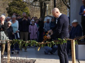 Det var en lang proces at gøre drømmen til virkelighed. Gennem flere år blev idéer udviklet, muligheder undersøgt og partnerskaber etableret. I 2024 blev projektet en realitet, og vi kunne tage det første spadestik takket være generøs støtte fra Nordea-fondens projekt Vekselvirke, Fynske Bank Fonden og midler fra Vejle Kommunes ULN-pulje. I dag står haven endelig klar til brug efter borgmester Jens Ejner Christensen klippede “snoren” – en lian af efeu – og erklærede haven for åben d. 9. april 2025.