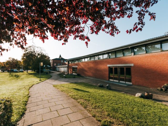 Du kan også orientere dig med musen, imens vi giver en virtuel rundvisning på skolen. Bare tryk på billedet, træk med musen og orienter dig undervejs.